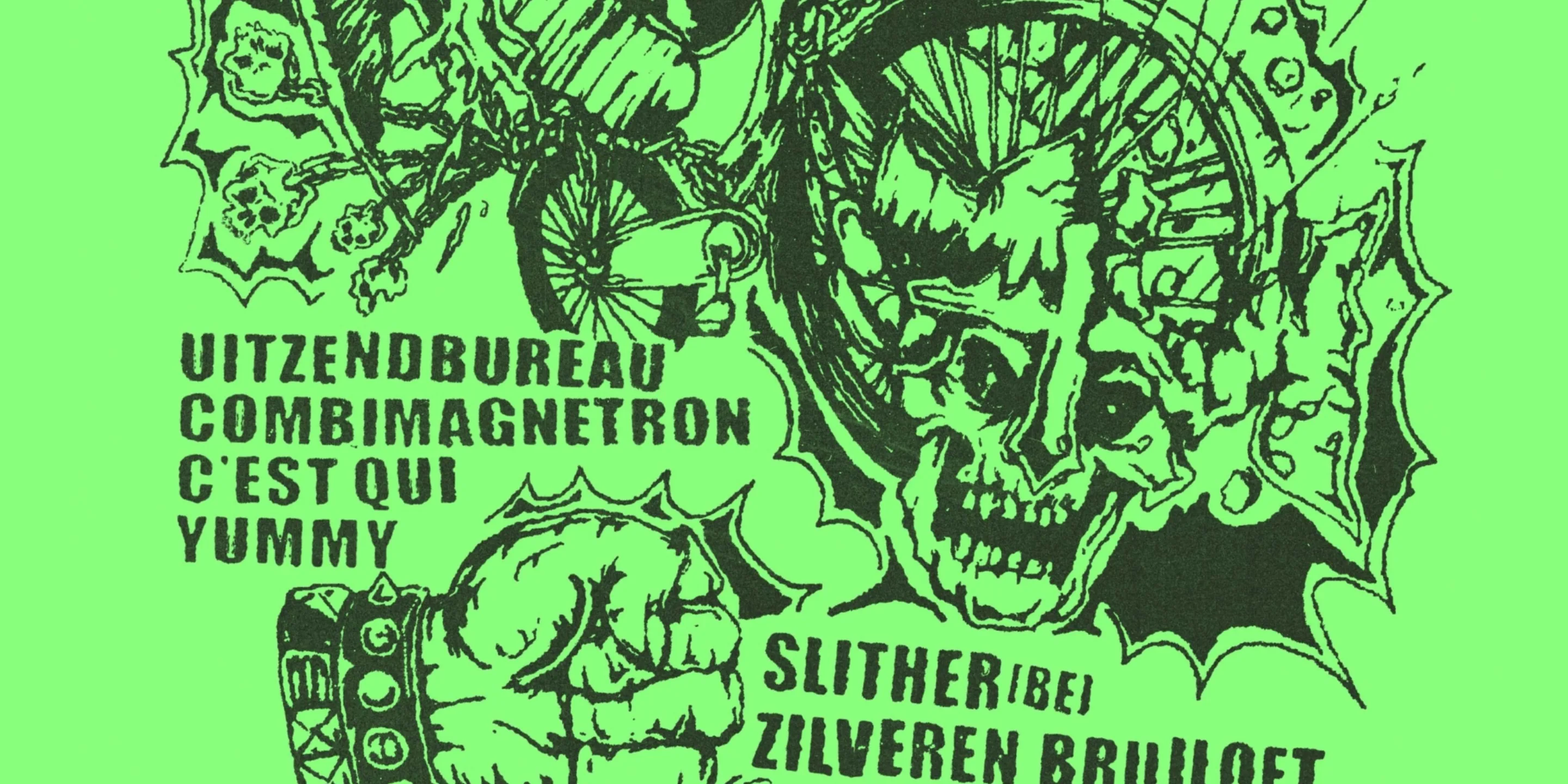 Uitzendbureau is a loud, eight-armed hardcore band from Amsterdam. A brutal explosion of energy, HC PUNK from Dutch soil. Unfiltered, extraordinary dispute music: shouting about the king, dystopia, and the established order. On this evening, they will kick off the new year together with 5 different like-minded bands: Zilveren Bruiloft, Yummy, Slither (BE), C'est Qui & Combimagnetron.
